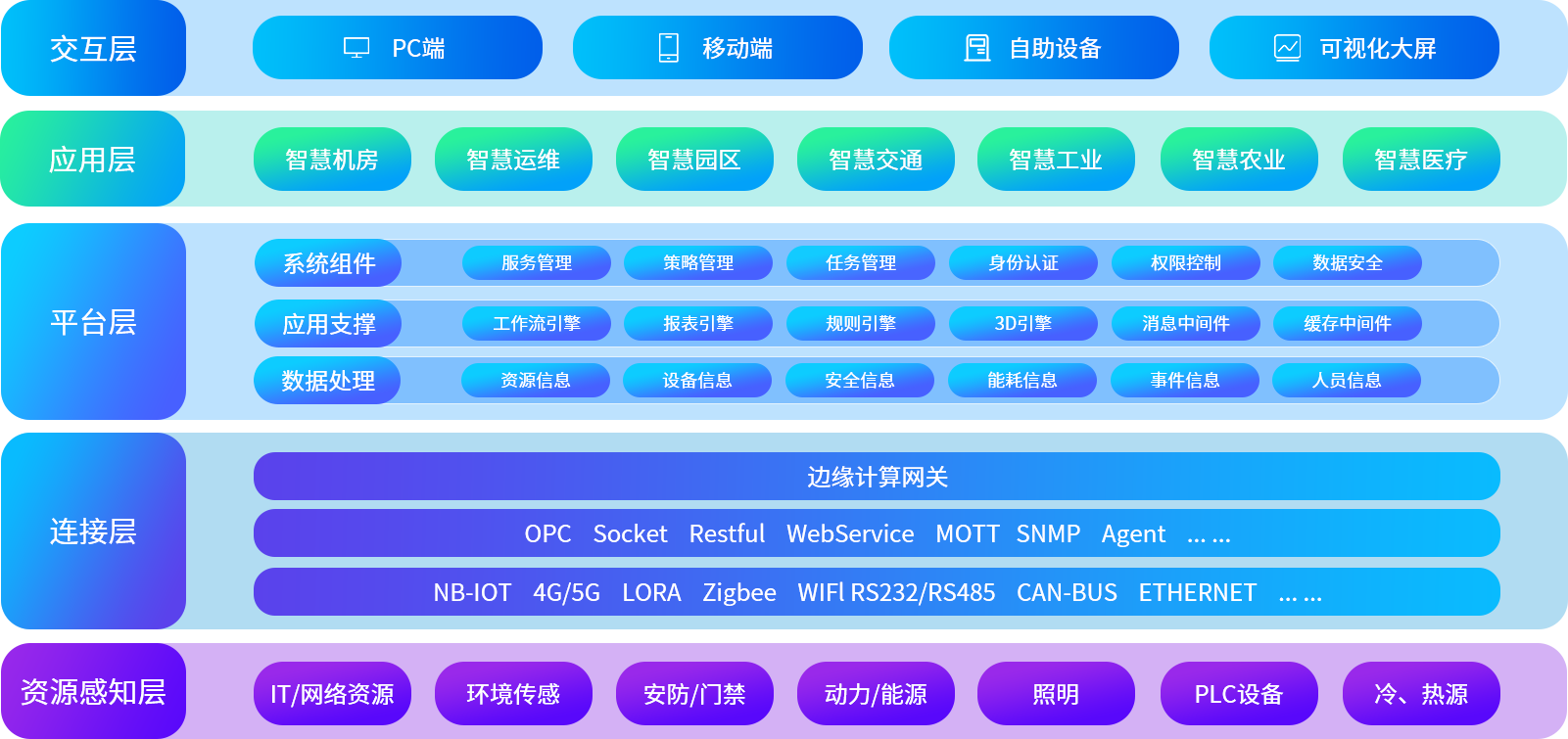 擁有業界領先的引擎、插件和多年的跨行業的物聯應用經驗,能夠快速構建不同行業的基礎物聯應用,為行業智慧升級提供高效便捷的系統服務。